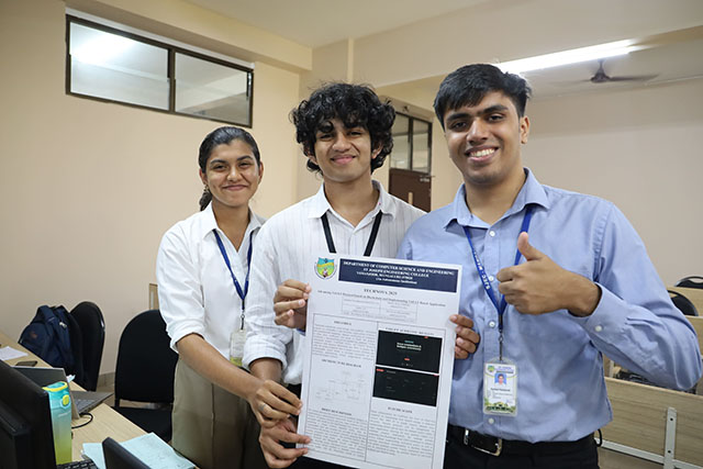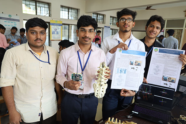 Most innovative projects from various disciplines included RC controlled lake/water surface cleaner (ME), synergistic effects of induction steel furnace in alkali-activated slag composites (CV), real time face recognition and content projection using smart glasses (CSE), real-time soil analysis and crop recommendations using IoT technology(EEE), real time spatial and navigation of pedicle probes (ECE), AI driven adaptive signal control for optimizing traffic flow and congestion (AIML), camera-based sound-tracking servo (CSDS) and multimodal agentic framework for behavioural profiling (CSBS).