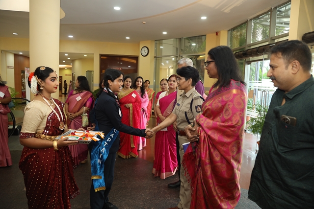 The programme commenced with the National Anthem, followed by a soulful prayer. The celebration then began with the auspicious lighting of the lamp by the dignitaries. Chief guest Geetha D Kulkarni (assistant commissioner of Police – CCRB, Mangaluru), AGE administrator Sreedhar Ranganath Pai, principal Srilatha Alva, vice principal Shilpa Moger, headmistress Sapna Shetty, PTA president Sachin K J, PTA vice president Sunitha Furtado, and school captain Saanvi together illuminated the lamp, symbolising the spread of knowledge, wisdom, and positivity as the programme commenced.