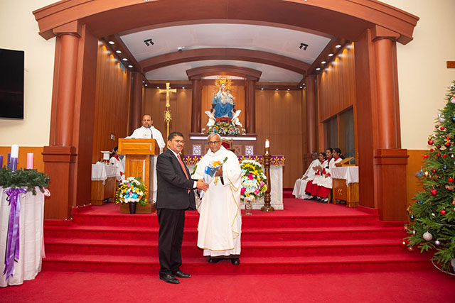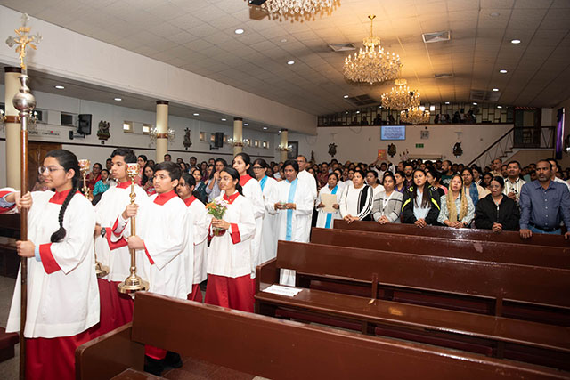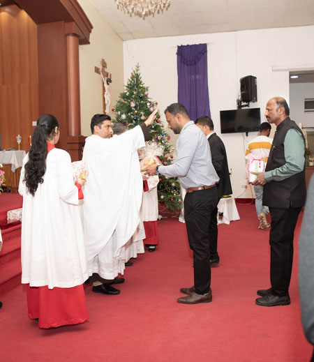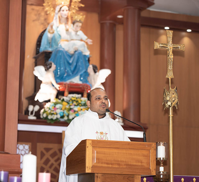 The holy Mass was presided over by Fr Orfin Menezes, a guest priest from Goa, and co-celebrated by Fr (Dr) Antony Lopez, OFM Cap, chancellor & judicial vicar, along with Fr Avil Manoj Rosario and Fr Darel Fernandes, who are currently serving in Kuwait.
