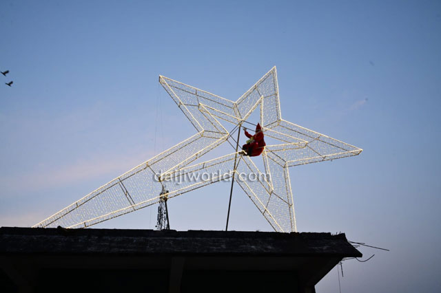 This massive Christmas star is the result of dedicated effort by the youth of St Aloysius Church, guided by Fr Shaji Math and Fr Alex Johnson. Every night, visitors from various places flock to Nellyadi to witness the spectacular display.