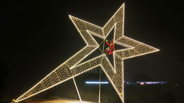 The SMYM youth group of St Aloysius Church in Nellyadi, Puttur taluk, crafted what is now recognised as the tallest and largest Christmas star in Dakshina Kannada (DK) this festive season. Standing at an impressive 42 feet, the star has earned the distinction of being the highest Christmas star in the district.