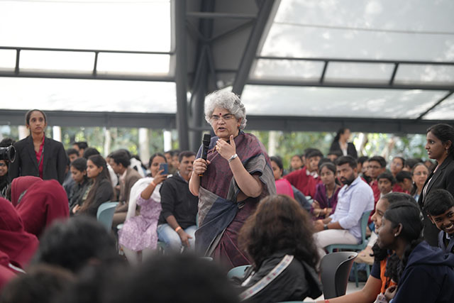 The chief guest, Gayathri Vasudevan, founder and chief impact officer at Sambhav Foundation, delivered an inspiring address, encouraging students to embrace purposeful learning, social responsibility, and innovation as key drivers of meaningful impact in society. Her address resonated strongly with the participants, motivating them to pursue excellence beyond the classroom.