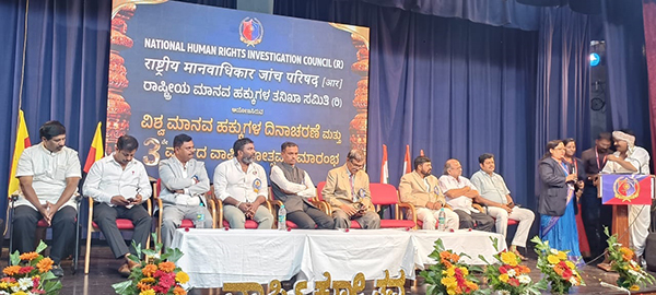 108 Arogya Kavacha ambulance state chief Hanumanthappa R G, who was awarded the Karnataka Book of Records for his excellent service to the poor patients of the state in the health sector, was felicitated at the World Human Rights Day and NHRIC third year anniversary programme organized by the Human Rights Investigation Center at Gandhi Bhavan in Bengaluru on December 14.