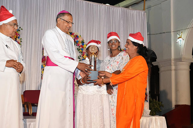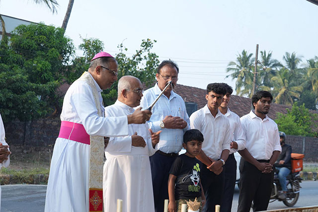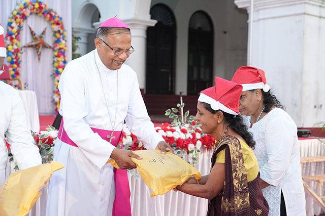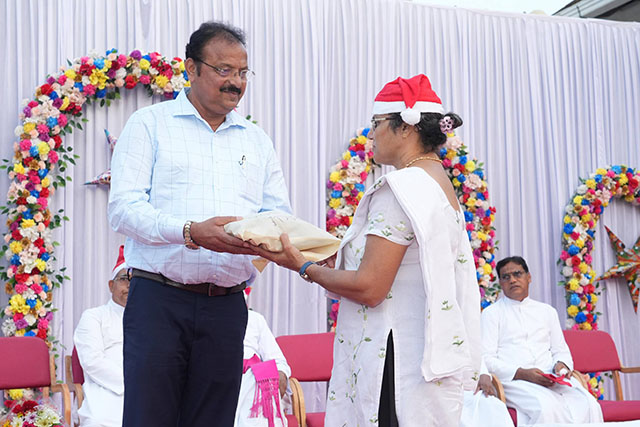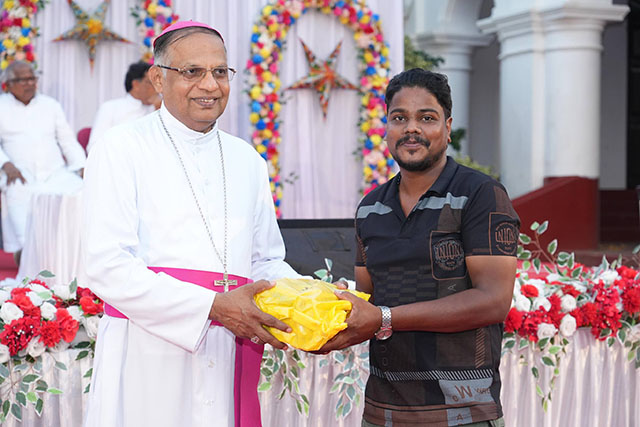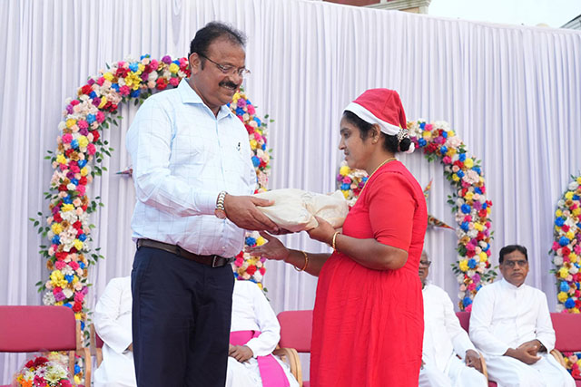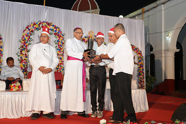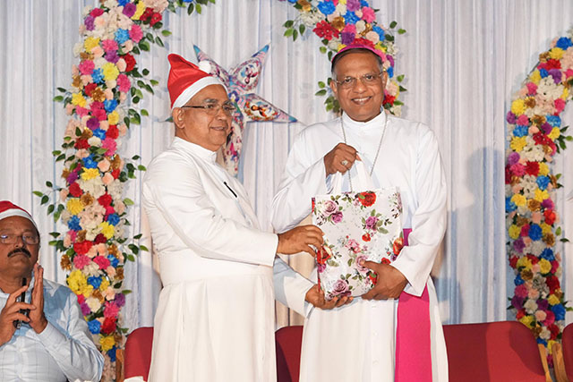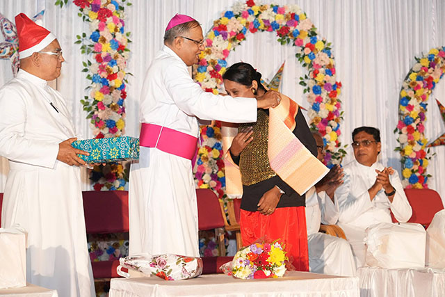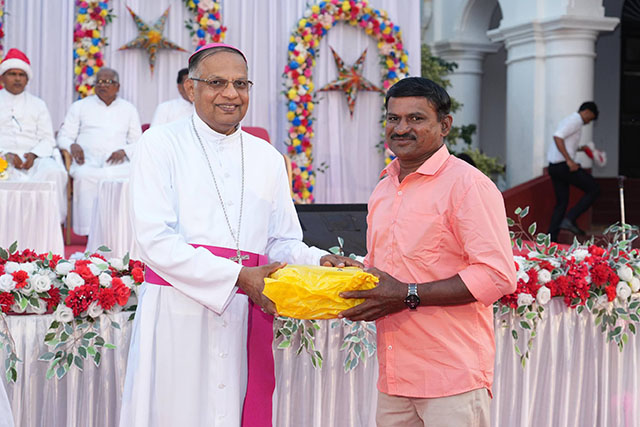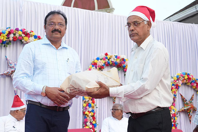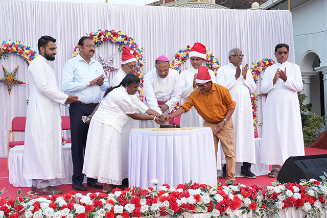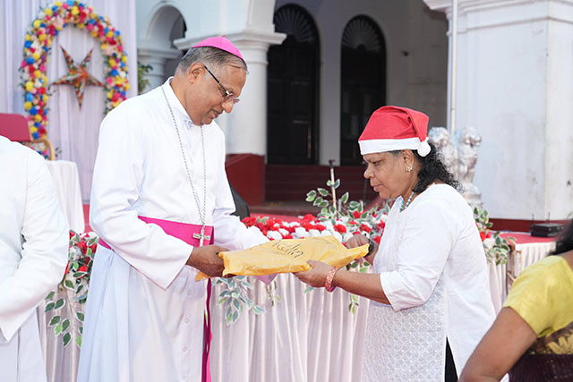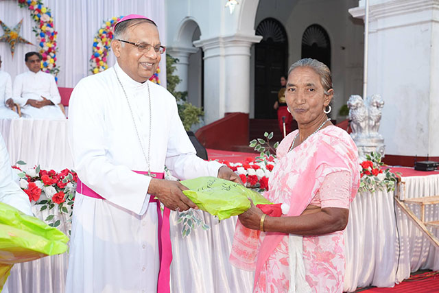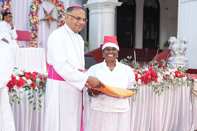 During the ceremony, the bishop honoured Santhosh Sequeira, the coordinator of the programme, for his immense generosity in distributing Kuswar (traditional Christmas sweets) and gifts to all the ashram residents, bringing smiles to their faces.