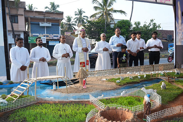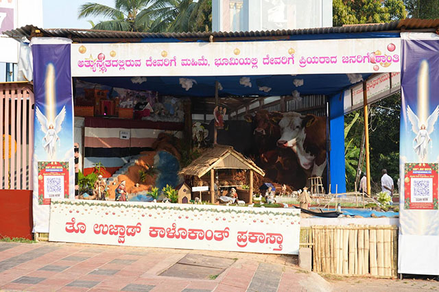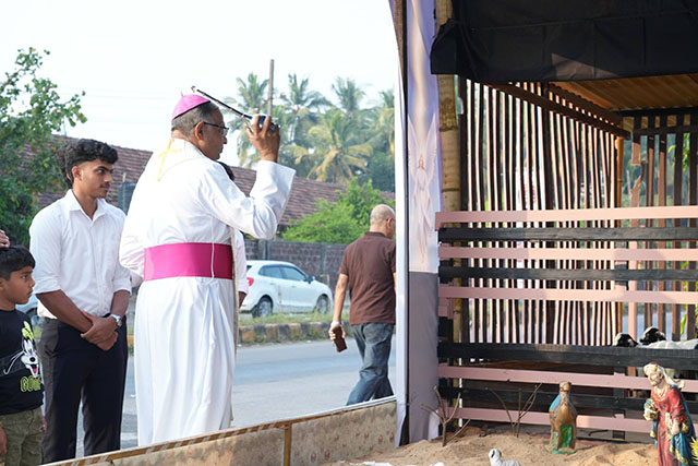 Mangaluru, Dec 22: The bishop of Mangalore, Dr Peter Paul Saldanha, celebrated the joy of Christmas with the residents of St Anthony Ashram, Jeppu, on Sunday, December 21. The celebration was highlighted by the inauguration of a unique ‘Digital Crib,’ merging traditional devotion with modern technology.