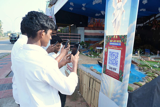 The programme commenced at the ashram entrance, where the bishop blessed the grand Christmas crib. This year’s special attraction features an interactive digital experience; visitors can scan a QR code to immerse themselves in a virtual Nativity journey, participate in quizzes, and learn the history of crib traditions globally.