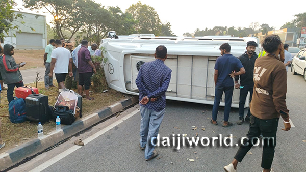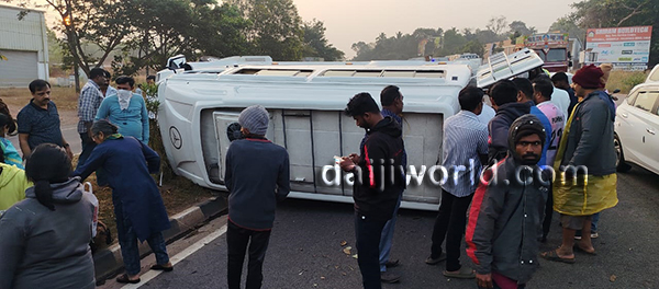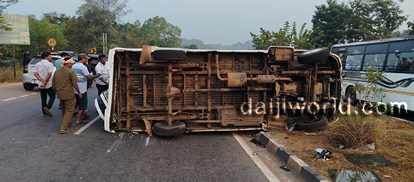 The tempo traveller was on its way from Kerala to Goa when the accident occurred. The vehicle went out of control near the sugar factory area at Brahmavar and overturned on the road.