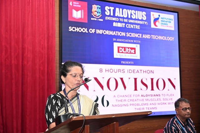 Mangaluru, Jan 7: The School of Information Science and Technology and the Department of Placement and Training, St Aloysius (Deemed to be University), AIMIT Centre, in association with DLithe, successfully organised Innovision 2026 – an 8-hour Ideathon on Tuesday, January 6, 2026, at 9 am. The event provided an exciting platform for Aloysians to showcase creativity, innovation, teamwork, and problem-solving skills while addressing real-world challenges.