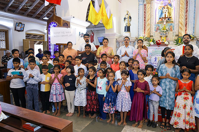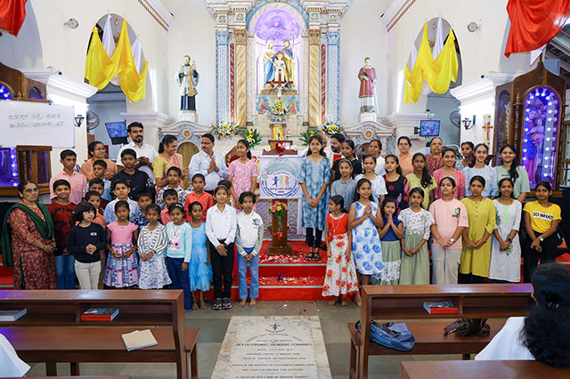 As the Mangalore diocese has declared the year as the Year of Children, a special inauguration was held at the conclusion of the Holy Mass. In his homily, Fr Victor D’Souza emphasized that children are the wealth of the Holy Christian community and called upon the faithful to nurture and guide them in faith and values. Special prayers were offered for the well-being and holistic growth of all children.