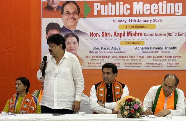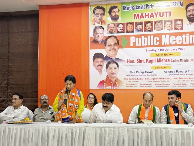 Mumbai, Jan 11: After a gap of eight years, elections to the Brihanmumbai Municipal Corporation (BMC) are scheduled to be held on Thursday, January 15. In this context, a Bharatiya Janata Party (BJP) campaign meeting was held today, Sunday, at Goenka Bhavan in J B Nagar, Andheri East.
