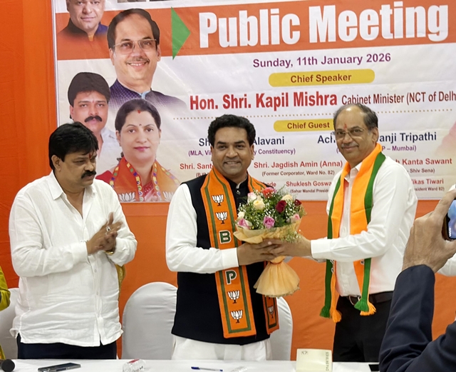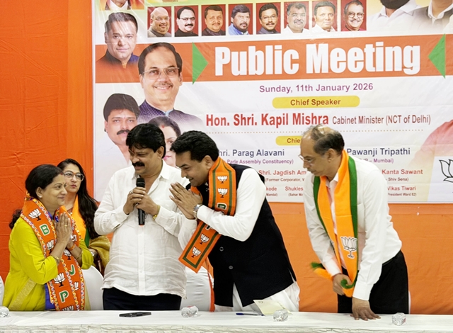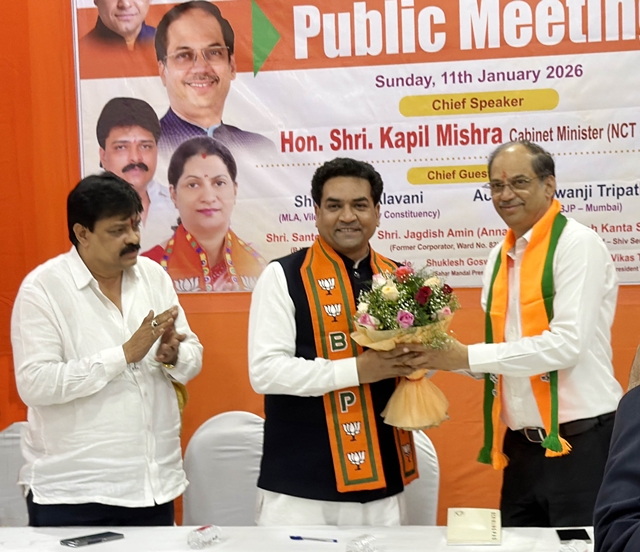 From Andheri East’s K-East Ward No. 82, BJP has fielded Tulu-Kannadiga candidate Jagadheeshwari Jagadish Amin, originally from Karkala. Addressing the BJP–Shiv Sena (Eknath Shinde)–RPI Athawale alliance (Mahayuti) public meeting, Union Minister and Law and Justice, Labour, Employment, Development, Art and Culture, Language, and Tourism Minister Kapil Mishra attended as the chief guest and extended his best wishes to all the candidates in the fray.