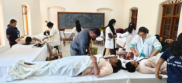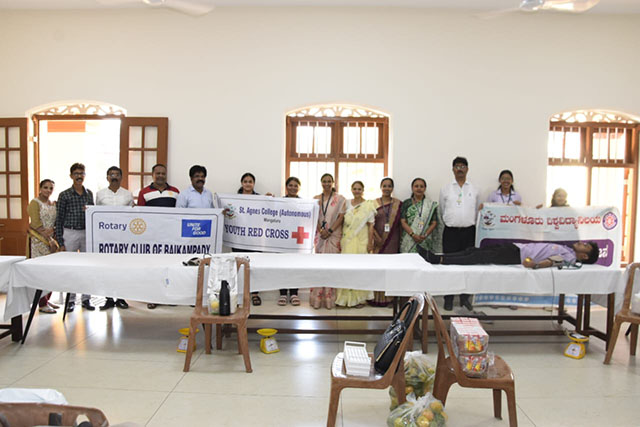 Mangaluru, Jan 13: The NSS, Youth Red Cross and NCC Wings of St Agnes College (Autonomous), Mangaluru, in association with Kasturba Medical College Blood Centre, Attavar, and the Rotary Club Baikampady organized a blood donation camp on January 13 at A4, Avila Block, St Agnes College(Autonomous), Mangaluru.