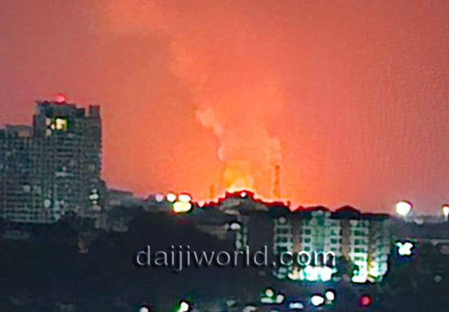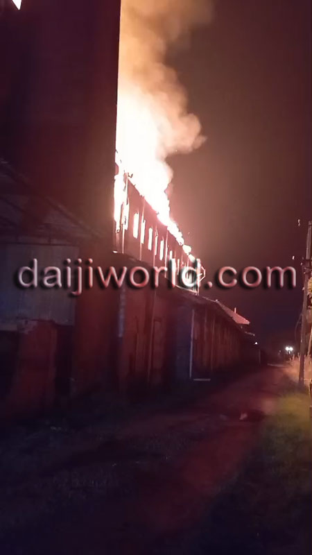 Despite thick smoke engulfing the area, firefighters made strenuous efforts to bring the blaze under control. The intensity of the fire increased as large quantities of firewood and other materials stored on the factory premises for tile firing caught fire, with flames seen rising high into the air.