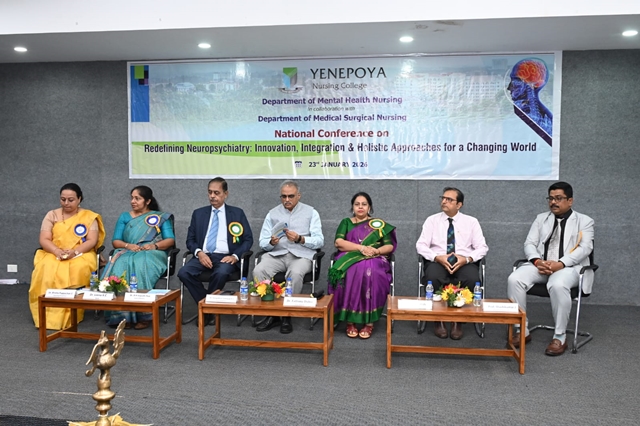 Mangaluru, Jan 23: The Department of Mental Health Nursing, Yenepoya College of Nursing, in collaboration with the Department of Medical Surgical Nursing, organised a national conference on “Redefining Neuropsychiatry: Innovation, Integration & Holistic Approaches for a Changing World” on January 23 at the EMD Hall, Yenepoya (Deemed to be) University.