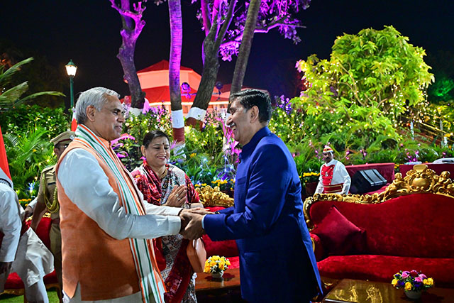 Mumbai, Jan 27: The Governor of Maharashtra and Gujarat Acharya Devvrat hosted a reception and tea party for invited guests on the occasion of the 77th Republic Day at Lok Bhavan Mumbai on Monday, January 26. Chief minister Devendra Fadnavis, chief justice S Chandrashekhar and others were in attendance.