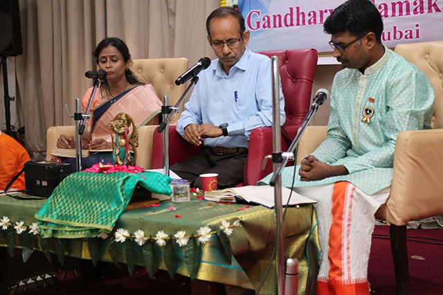 In her introductory address, Revathi Chidambar, director and teacher of the Gandharva Gamaka School, Dubai, stated that the Gamaka school envisioned by Padma Shri Keshava Murthy has been functioning successfully across Karnataka, and extending its presence overseas is a matter of immense joy and pride. She emphasised that the objective of establishing the school in Dubai is to enable non-resident Kannadigas to access the wisdom, cultural depth, and intellectual richness inherent in the ancient art of Gamaka. She expressed her hope that Gamaka would transcend geographical and linguistic boundaries and reach art enthusiasts across the world.