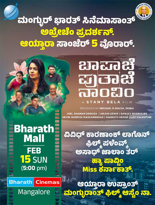 Mangaluru, Feb 13: The critically acclaimed Konkani film Bapache Putache Navim (BPN) is set to be screened at Bharath Cinemas on public demand on February 15 at 5 pm.