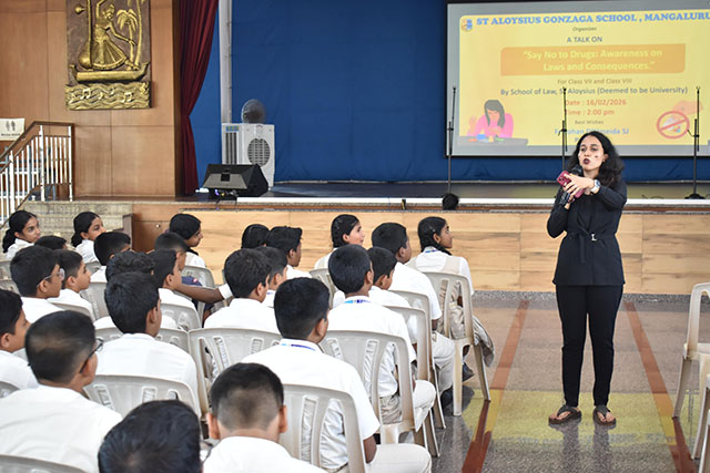 Mangaluru, Feb 18: St Aloysius Gonzaga School organized an awareness session on 'Say no to drugs: Awareness on laws and consequences' for the students of classes VII and VIII on February 16. The session aimed to educate students about the legal, social, and health consequences of drug abuse and to encourage responsible decision-making.