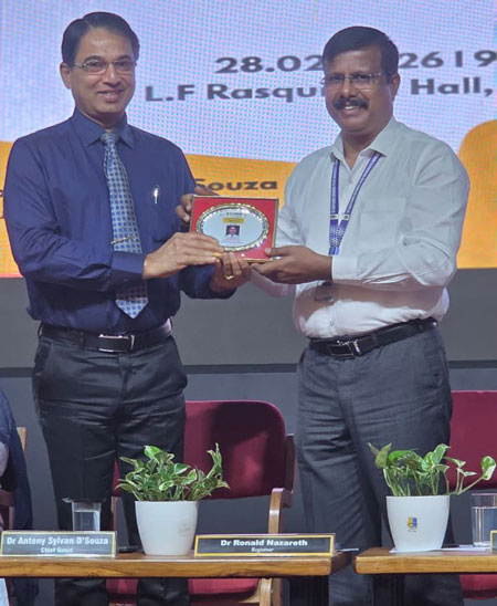 Chief guest Dr Antony Sylvan D’Souza, dean and professor of Anatomy, Father Muller Medical College, emphasised scientific inquiry and interdisciplinary innovation.