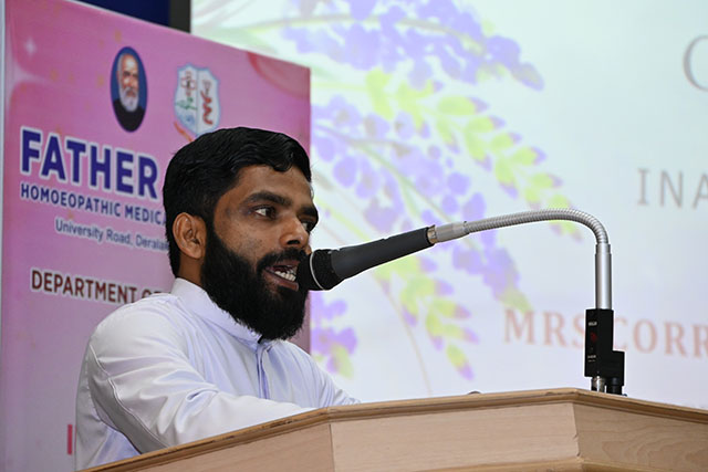 The day commenced with open forum presentation by the faculties. The inaugural ceremony was graced by the dignitaries, Fr Donald Nilesh Crasta, administrator, FMHMC & H, Dr E S J Prabhu Kiran, principal, FMHMC & H, chief guest, Corrine Antoinette Rasquinha, Dr Vilma Meera D’Souza, vice principal, professor & HOD, Dept of OBG, convener, and the resource person of the morning session, Dr Vinu Krishnan, chief medical officer, Homoeopathic Palliative Centre, Malappuram.