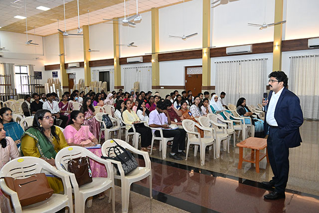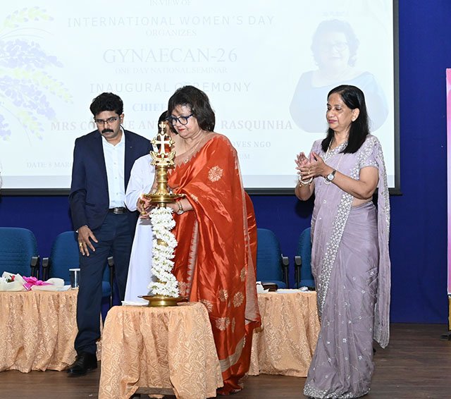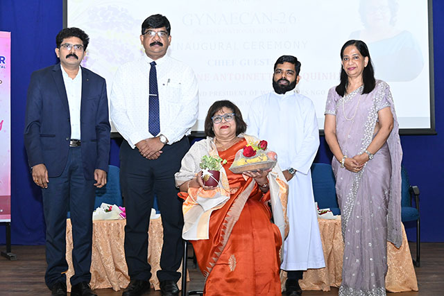 Ceremony formally inaugurated by invoking God’s blessings followed by lighting of the lamp ceremony. Dr E S J Prabhu Kiran, principal welcomed the august gathering. Chief guest, Corrine Antoinette Rasquinha, courageously shared her personal journey of battling cancer. Through her experience she reminded the importance of early awareness and screening, expressing her heartfelt wish that no other women should have to go through the same struggle.