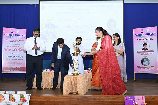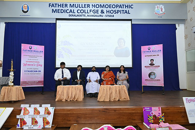 Mangaluru, Mar 12: On the occasion of International Women’s Day, the department of obstetrics and gynaecology and OBG OPD units of Father Muller Homoeopathic Medical College & Hospital (FMHMC) organized a one-day national seminar, GYNAECAN-26 on the topic 'Female Malignancies (breast and genital)' on March 8 in College Auditorium, Deralakatte.