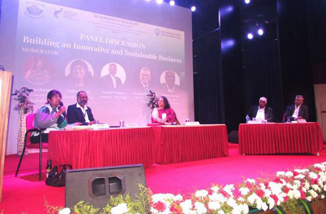 The first session, on the theme ‘Building Innovation and Sustainable Business’, brought together eminent industry experts including Nisha Ninan, social innovator; Daniel Madapur, founder of The Edge; Nazarious Manoharan, brand and creative consultant; and Selvam George, chairman of 5e Serpraise. The session was moderated by Luvena Rangel, DEIAB branding and communication strategist at Abedent.