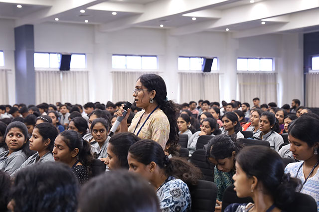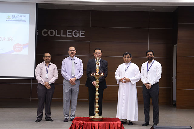 The programme commenced with a prayer, followed by ‘A Walk Down Memory Lane – SJEC', which highlighted the institution’s milestones and achievements. The dignitaries were then escorted to the dais, after which the principal delivered the welcome address. The ceremonial lighting of the lamp marked the formal inauguration of the lecture series. Dr Shama B N introduced the keynote speaker, following which Prof Dhaval Pujara delivered his insightful talk. The session engaged the audience with thought-provoking ideas and was followed by an interactive question-and-answer session in which students and faculty actively participated.