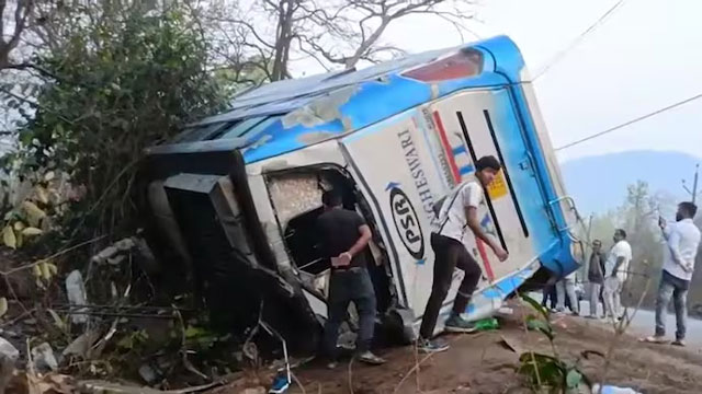 The private bus, carrying over 40 passengers from Berhampur to Harishankar on an excursion, reportedly went out of control before ramming into a large rock and overturning.