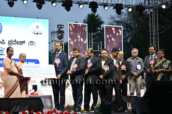 A cheque of Rs 1 crore was formally handed over to the management of Goretti Hospital for the development of its facilities and dialysis centre. Joshal D’Souza and Ronald D’Almeida were also felicitated on the occasion.