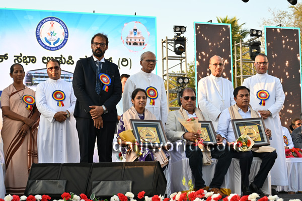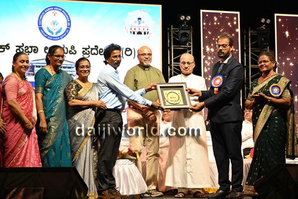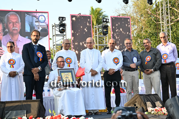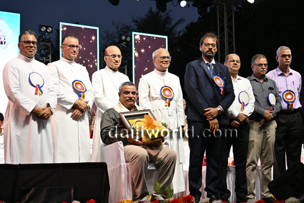 Philanthropist Joseph Menezes was honoured for his contribution towards dialysis patients through Trinity Healthcare Services. He remarked, "True celebration is about sharing. If we have good health, we must help those who cannot afford treatment. The vision of the Catholic Sabha has become a reality today."