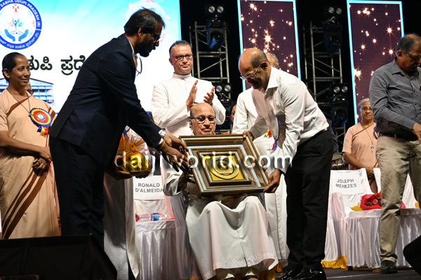Dr Gerald Isaac Lobo, Apostolic Administrator of Udupi Diocese, was felicitated for his constant support to the Catholic Sabha during his tenure as the Bishop of Udupi. In his address, he said, "Our diocese has completed 10 years, and through our health commission, we continue to provide benefits to the people. Today, we see the Catholic Sabha contributing dialysis machines and healthcare support. Ronald D’Almeida and his team had a big dream of contributing Rs 1 crore to Goretti Hospital, which they have successfully fulfilled. I thank all donors who have displayed their humanity. Our vision is that no one in this district should be pushed into poverty due to healthcare, housing, or education costs."