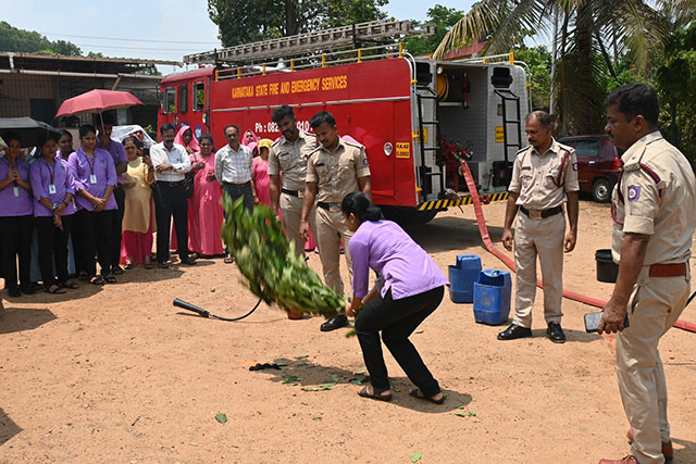 The Event was facilitated by a team of experienced resource persons from the Fire station Pandeshwar, including Praveen, Harish K T, Sathish Kumar, Charan Patagar, Janty Chouhan and Dharma M. A mock drill was conducted by the fire extinguisher team to create awareness and enhance preparedness for fire emergencies. During this session, the team explained the different types of fire extinguishers and their specific uses for various classes of fire. They also demonstrated the correct methods of using fire extinguishers and techniques for controlling different types of fire. The drill was informative and helped participants understand practical fire safety measures, improving their confidence and readiness to respond effectively during emergencies.