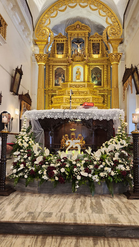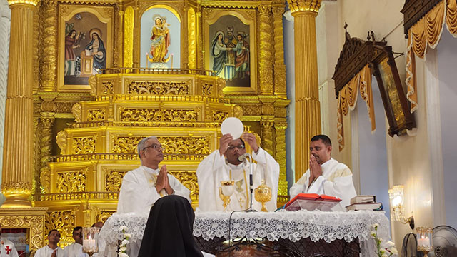 The thanksgiving liturgy was presided over by Fr Romeo Monteiro, chancellor of the Goa archdiocese, joined by a grand assembly of 22 concelebrating priests. The atmosphere was set by the choir of Perpetual Succour Convent High School, Navelim, whose melodic harmonies led the congregation in a graceful participation of the celebration.