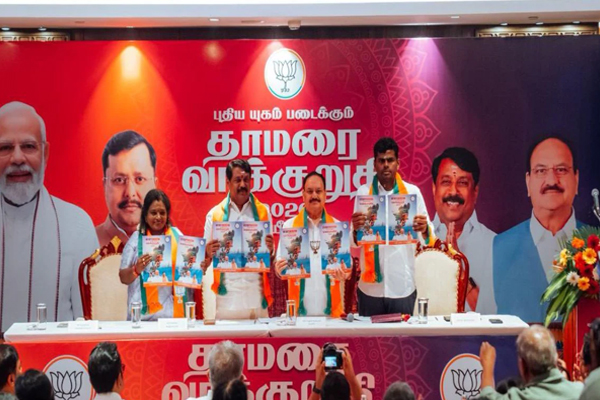 ತಮಿಳುನಾಡಿಗೆ ಬಿಜೆಪಿಯ ಪ್ರಣಾಳಿಕೆ ಬಿಡುಗಡೆ: ವಾರ್ಷಿಕ 3 ಉಚಿತ ಎಲ್ಪಿಜಿ, ಮಹಿಳೆಯರಿಗೆ 2,000 ರೂ.