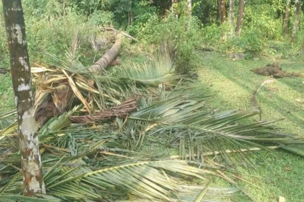 ಹೆಬ್ರಿ : ಕಾಡಾನೆ ದಾಳಿ - ಬಾಳೆ, ತೆಂಗಿನ ತೋಟಗಳಿಗೆ ಹಾನಿ