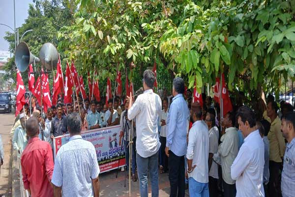 ಮಂಗಳೂರು: ಕೆಂಪು ಕಲ್ಲು ಮತ್ತು ಮರಳು ಸಮಸ್ಯೆ ಪರಿಹರಿಸಲು ಒತ್ತಾಯಿಸಿ ಕಟ್ಟಡ ಕಾರ್ಮಿಕ ಫೆಡರೇಶನ್ ಬೃಹತ್ ಪ್ರತಿಭಟನೆ