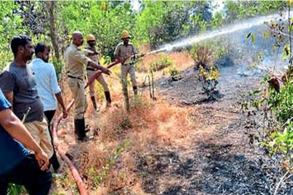 ಮಂಗಳೂರು : ಅರಸು ಪದವು ಗುಡ್ಡದಲ್ಲಿ ಮತ್ತೆ ಬೆಂಕಿ - ಕಾರ್ಯಾಚರಣೆ