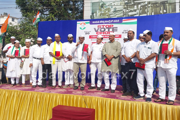 ಉಡುಪಿ: ಕೇಂದ್ರ ಸರ್ಕಾರದ 'ವೋಟ್ ಚೋರಿ' ವಿರುದ್ಧ ಕಾಂಗ್ರೆಸ್ನಿಂದ ಬೃಹತ್ ಪ್ರತಿಭಟನೆ
