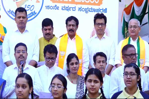 ಮಂಗಳೂರು: ಬಿಜೆಪಿ ಕಚೇರಿಯ ಮುಂದೆ ಸಾಮೂಹಿಕವಾಗಿ ವಂದೇಮಾತರಂ ಗೀತೆ
