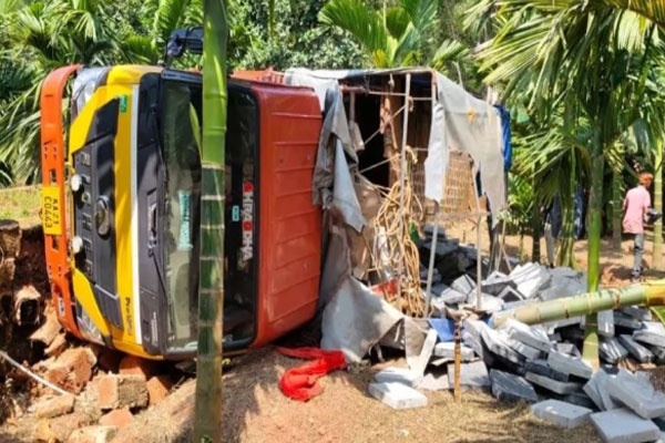 ಸುಳ್ಯ : ಲಾರಿ ಪಲ್ಟಿ - ಚಾಲಕ ಮತ್ತು ನಿರ್ವಾಹಕನಿಗೆ ಗಾಯ