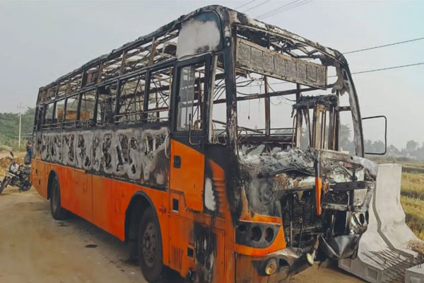 ಕೆಎಸ್ಆರ್ಟಿಸಿ ಬಸ್ಗೆ ಬೆಂಕಿ - ಪವಾಡ ರೀತಿಯಲ್ಲಿ ಪಾರಾದ ಪ್ರಯಾಣಿಕರು