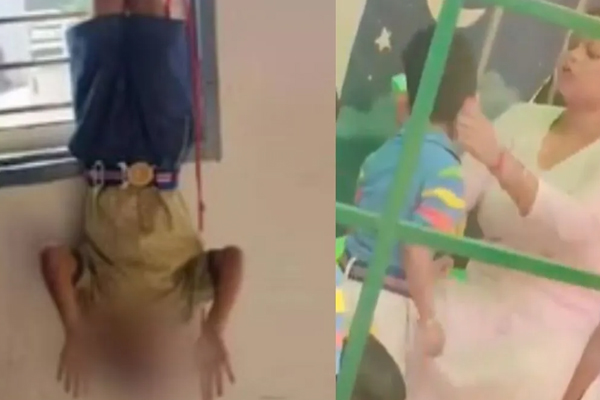 ಹೋಂ ವರ್ಕ್ ಮಾಡದಿದ್ದಕ್ಕೆ ವಿದ್ಯಾರ್ಥಿಯನ್ನ ತಲೆ ಕೆಳಗಾಗಿ ನೇತುಹಾಕಿ ಥಳಿಸಿದ ಶಿಕ್ಷಕಿ