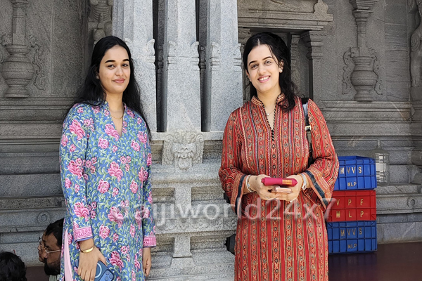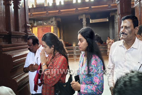 ಉಡುಪಿ, ನ. 03 (DaijiworldNews/AA): ಕಾಪು ಶ್ರೀ ಹೊಸ ಮಾರಿಗುಡಿ ದೇವಸ್ಥಾನಕ್ಕೆ ಭಾರತದ ಟಿ20 ತಂಡದ ಕ್ಯಾಪ್ಟನ್ ಸೂರ್ಯ ಕುಮಾರ್ ಯಾದವ್ ಪತ್ನಿ ದೇವಿಶಾ ಭೇಟಿ ನೀಡಿ ಉಚ್ಚಂಗಿ ಸಹಿತ ಶ್ರೀ ಮಾರಿಯಮ್ಮ ದೇವಿಯ ದರ್ಶನ ಪಡೆದರು.