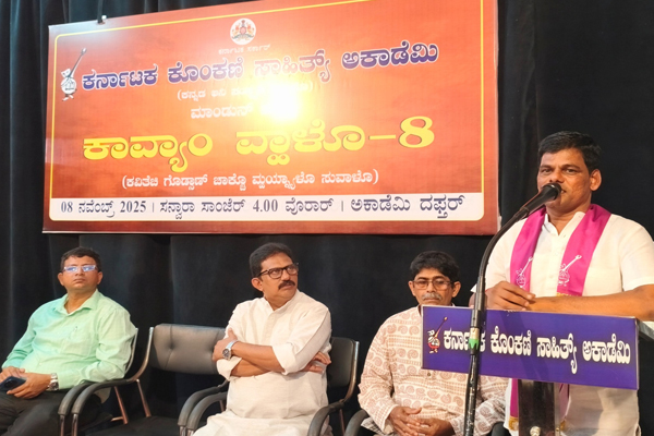 ಮಂಗಳೂರು, ನ. 08 (DaijiworldNews/AA): 'ಕಾವ್ಯಾಂ ವ್ಹಾಳೊ-8' ಶೀರ್ಷಿಕೆಯಡಿ ಕರ್ನಾಟಕ ಕೊಂಕಣಿ ಸಾಹಿತ್ಯ ಅಕಾಡೆಮಿ ವತಿಯಿಂದ ಅಕಾಡೆಮಿ ಸಭಾಂಗಣದಲ್ಲಿ ನವೆಂಬರ್ 8ರಂದು ಕವಿಗೋಷ್ಟಿಯನ್ನು ಹಮ್ಮಿಕೊಳ್ಳಲಾಗಿತ್ತು.