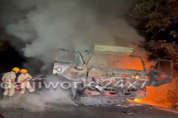 ಶನಿವಾರ ನಸುಕಿನ ಜಾವ 2.30ರ ವೇಳೆಗೆ ಈ ಘಟನೆ ಮಾಳ ಎಸ್.ಕೆ ಬಾರ್ಡರ್ ಸಮೀಪ ಹಾದು ಹೋಗಿರುವ ರಾಷ್ಟ್ರೀಯ ಹೆದ್ದಾರಿಯಲ್ಲಿ ಘಟನೆ ಸಂಭವಿಸಿದೆ. ಮಾಹಿತಿ ತಿಳಿಯುತ್ತಿದ್ದಂತೆ ಕಾರ್ಕಳ ಅಗ್ನಿಶಾಮಕ ದಳವು ಬೆಂಕಿ ನಂದಿಸುವ ಕಾರ್ಯಚರಣೆ ನಡೆಸಿದೆ. ಅದಾಗಲೇ ಲಾರಿ ಸಂಪೂರ್ಣ ಹೊತ್ತಿ ಭಸ್ಮವಾಗಿದೆ.