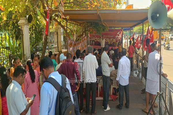 ಮಂಗಳೂರು,ನ. 24 (DaijiworldNews/AK):ಕಳೆದ 7 ವರ್ಷಗಳಿಂದ ಬೀಡಿ ಕಾರ್ಮಿಕರಿಗೆ ಕನಿಷ್ಠ ಕೂಲಿ ವಂಚಿಸುತ್ತಾ ಬಂದಿರುವ ಬೀಡಿ ಮಾಲಕರ ವಿರುದ್ಧ ಹಾಗೂ ಕನಿಷ್ಠ ಕೂಲಿ ಜಾರಿ ಮಾಡಲು ಮೀನಾ ಮೇಷ ಎಣಿಸುವ ರಾಜ್ಯ ಸರಕಾರದ ವಿರುದ್ದ ಬೀಡಿ ಕಾರ್ಮಿಕರು CITU ನೇತ್ರತ್ವದಲ್ಲಿ ಇಂದಿನಿಂದ ನಗರದ ಕ್ಲಾಕ್ ಟವರ್ ಬಳಿಯಲ್ಲಿ ರಾತ್ರಿ ಹಗಲು ಧರಣಿ ಸತ್ಯಾಗ್ರಹವನ್ನು ಆರಂಭಿಸಿದರು.