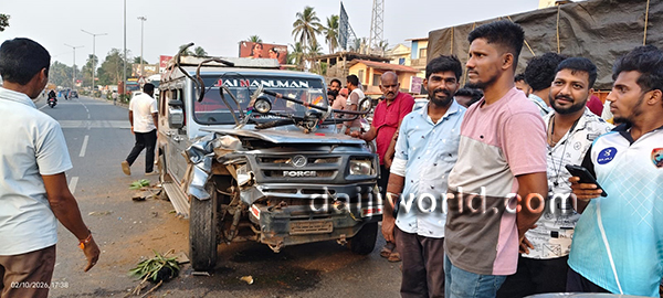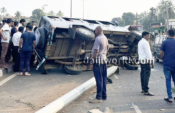 ಕುಂದಾಪುರ, ಫೆ. 11 (DaijiworldNews/AA): ಪ್ರವಾಸಿ ವಾಹನವೊಂದರ ಟೈರ್ ಸ್ಫೋಟಗೊಂಡು ಚಾಲಕನ ನಿಯಂತ್ರಣ ತಪ್ಪಿದ ಪರಿಣಾಮ, ವಾಹನವು ಡಿವೈಡರ್ ದಾಟಿ ಎದುರಿನಿಂದ ಬರುತ್ತಿದ್ದ ಎರಡು ಕಾರುಗಳಿಗೆ ಢಿಕ್ಕಿ ಹೊಡೆದು ಪಲ್ಟಿಯಾದ ಘಟನೆ ಬ್ರಹ್ಮಾವರ ತಾಲೂಕಿನ ಕೋಟ ಬಸ್ ನಿಲ್ದಾಣದ ಸಮೀಪದ ರಾಷ್ಟ್ರೀಯ ಹೆದ್ದಾರಿ 66ರಲ್ಲಿ ಫೆಬ್ರವರಿ 10ರ ಸಂಜೆ ಸಂಭವಿಸಿದೆ.