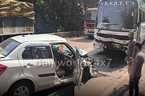 ಸಕಲೇಶಪುರದಲ್ಲಿ ಮದುವೆಗೆ ಹೋಗಿ ಕೊಕ್ಕಡಕ್ಕೆ ವಾಪಸ್ ಬರುವಾಗ ಅಪಘಾತ ಸಂಭವಿಸಿದೆ. ಧರ್ಮಸ್ಥಳದಿಂದ ಮಧ್ಯಾಹ್ನ 2.30ಕ್ಕೆ ಹೊರಟು ಬೆಂಗಳೂರು ಮೂಲಕ ತಿರುಪತಿ ಹೊರಟಿರುವ ರಾಜಹಂಸ ಬಸ್ ಹಾಗೂ ಕಾರಿನ ಮಧ್ಯೆ ಗುಂಡ್ಯದ ಗಡಿ ದೇವಸ್ಥಾನದ ಸಮೀಪ ಈ ಅಪಘಾತ ಸಂಭವಿಸಿದೆ.