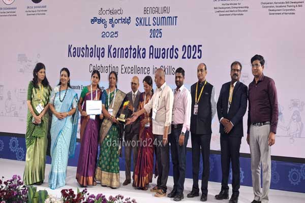 ಬೆಂಗಳೂರುನ. 06 (DaijiworldNews/AK): ರಾಷ್ಟ್ರೀಯ ಜೀವನೋಪಾಯ ಅಭಿಯಾನ (NRLM & NULM) ಅಡಿಯಲ್ಲಿ ಅತ್ಯುತ್ತಮ ಸಾಧನೆಗೈದ ರಾಜ್ಯದ 8 ಜಿಲ್ಲೆಗಳ ಸ್ವ-ಸಹಾಯ ಗುಂಪುಗಳ ಸದಸ್ಯರಿಗೆ ನೀಡಿ ಬೆಂಗಳೂರು ಕೌಶಲ್ಯ ಶೃಂಗಸಭೆ-2025 ಪ್ರಶಸ್ತಿ ನೀಡಿ ಗೌರವಿಸಲಾಯಿತು.